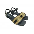 SANDALIA PLANA CON DETALLES EN RAFIA D'CHICAS EN COLOR NEGRO 5244