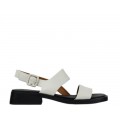 Sandalia Dana de la marca Camper en color blanco para mujer. Con un diseño sencillo de dos tiras realizadas en piel vacuno con plantilla OrthoLite recicladas para mayor confort.