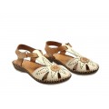 Sandalias de cuña baja tipo cangrejera para mujer Manlisa, fabricadas en España, perfectas para un verano cómodo y con estilo. Su diseño en colores tostados combina fácilmente con cualquier look, mientras que el cierre de velcro garantiza un ajuste rápido y seguro.