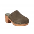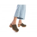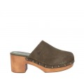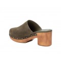 ZUECO DE TACÓN EN PIEL SERRAJE CARMELA EN COLOR KAKI 16046102