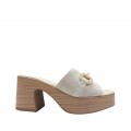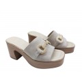 ZUECO DE TACÓN EN PIEL SERRAJE ELVIRA LOL SHOES EN COLOR ARENA