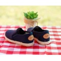 Alpargata para niño de la marca Chispas modelo 19CH en color marino o blanco. Corte realizado en material textil con elásticos que facilitan el calce, forro interior textil con plantilla de piel que asegura una correcta transpiración incluso en los días más calurosos, el piso es de esparto con suela de goma flexible y adherente.