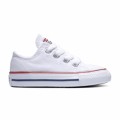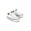 Zapatilla Converse All Star modelo 7J256C en color blanco unisex. Corte realizado en lona con puntera de goma, forro interior textil, cierre mediante cordones y suela de goma muy flexible y adherente. ¡Un modelo imprescindible para los peques este verano!