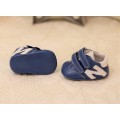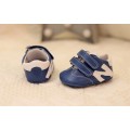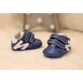 Zapatito deportivo para bebé de la marca española INDICE modelo 1634 en color azulón realizado en piel 100% natural con la puntera redonda para una buena colocación de los dedos. Fabricación española.