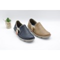 Mocasín de piel On Foot modelo 7033 en color cuero o marino. Corte realizado en piel con efecto picado en la pala y goma elástica en los laterales, forro interior de piel natural con plantilla extraíble para una mejor limpieza e higiene y a su vez te permite colocar otra ortopédica en caso de ser necesario, suela con tecnología Zen que se caracteriza por aliviar la tensión al caminar y masajear las áreas clave e incrementar la circulación del pie.