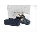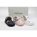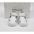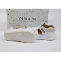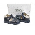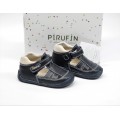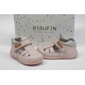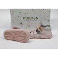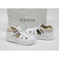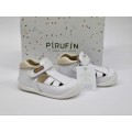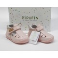 Sandalia cerrada Pirufin modelo 20003 en color marino, blanco o rosa para niño o niña. Corte realizado en piel con refuerzo en la puntera, forro y plantilla anatómica de piel, cierre de velcro fácil de poner y sacar, suela de goma flexible y muy adherente.