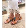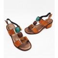 Sandalia de ante  con tacón bajo Plumers modelo 3372 en color caldero. El corte consiste en dos tiras de ante con detalle de tres piedras multicolor en el empiene, el forro interior es de piel con plantilla acolchada de piel, cierre mediante hebilla a la altura del tobillo y  tacón bajo cuadrado de 4 cm.