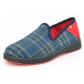 Zapatilla de casa cerrada La Cadena modelo 33051 en color azul. Corte fabricado en material textil con estampado de cuadros, forro interior textil y suela sintética con gran aderencia.