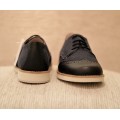 Blucher para vestir de la marca Pirufin modelo 11365 en color lino natural o marino para niño. El corte combina piel natural con tejido textil, forro interior de piel natural con excelente transpiración, cierre mediante cordones y suela de material sintético con gran flexibilidad para preservar el movimiento natural del pie. Calzado infantil de calidad.