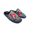 Corte realizado en material textil muy suave con grabados en la pala de Brutus y Popeye, muy ligeras con suela de caucho expandido especial para parquet. Fabricación española.