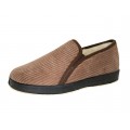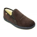 Zapatilla de casa cerrada La Cadena modelo 65683 en color gris, marrón o visón para hombre. Una zapatilla realizada con material textil de primera calidad, anatómica, con forro de lana pura virgen, lleva dos elásticos en los laterales que facilitan el calce y proporcionan un ajuste idóneo sin presionar el pie, la suela es gruesa de goma muy flexible y adherente.