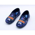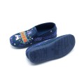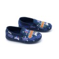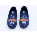 Zapatilla de casa cerrada Garrido Muro modelo 9600 en color azul-rojo. Corte fabricado en material textil muy calentito con divertido estampado sobre videojuegos Gamer, forro interior textil con suela de caucho muy flexible y adherente. Fabricación española.
