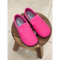 Zapatilla de casa cerrada Roal modelo 12103 en color jeans o fucsia para niño y niña. Corte realizado en tejido rizo toalla, lo que aporta gran frescura al pie con forro textil y plantilla extraíble, fabricadas 100% en España, con tratamiento antibacterias y aroma a eucalipto.