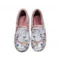 Corte realizado en material textil con detalle de Bici multicolor, plantilla extraible Plumaflex de efecto memoria, tratamiento de aroma de eucalipto y antibacterias, suela de material sintético flexible y adherente.