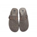 Corte realizado en fieltro con detalle de hebilla, forro interior textil aterciopelado con plantilla extraíble memory foam, la suela es sintética antideslizante y flexible.