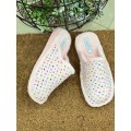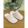 Zapatilla de casa descalza Andinas 402 lemur rosa. Corte fabricado en material textil con estampado de corazones, forro interior textil con pelito que aporta suavidad y calidez, suela de material sintético muy ligero.