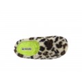 Corte realizado en material textil con estampado leopardo y plantilla de pelito con suela de caucho vulcanizado muy adherente.