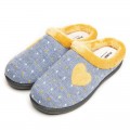 Zapatillas de casa semidescalza Plumaflex Roal 12221 lana en color amarillo para mujer. Corte realizado en material textil lana con detalle de corazón, plantilla extraible Plumaflex de efecto memoria, tratamiento de aroma de eucalipto y antibacterias, suela de material sintético flexible y adherente.