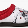Zapatilla de casa semidescalza Plumaflex Roal modelo 12213 en color gris para mujer. Corte realizado en material textil con sublimación "London", forro interior textil con plantilla extraíble plumflex, efecto memoria, tratamiento antibacterias y aroma eucalipto, suela de pvc para una gran adherencia.