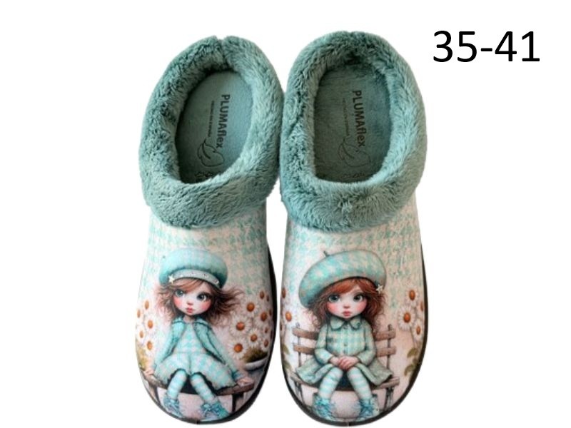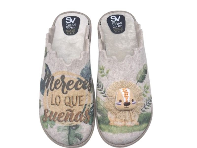 Corte realizado en antelina textil con forro de pelito muy suave y calentito, suela especial parquet de caucho. Fabricación española.