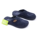Zapatilla de casa descalza Walk & Fly modelo 2307 en color azul. Corte realizado en piel serraje con elástico en el copete para un mejor ajuste, forro interior de piel con plantilla acolchada para mejor descanso y suela sintética muy flexible y adherente.