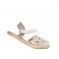 Alpargata para niña Pablosky ideal para llevar con vestidos este verano. Un modelo fresquito fabricado en material textil crochet beige muy suave que se adapta al pie a la perfección.
