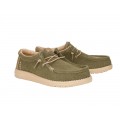 Te presentamos el mocasín para hombre Hey Dude Wally Workwear en color verde. Su sistema Easy-On con cordones elásticos permite un calce rápido, mientras que la suela EVA ultraligera y la plantilla de espuma extraíble garantizan máximo confort. Además, es fácil de lavar, asegurando practicidad en tu día a día.