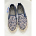 Corte realizado en lona con detalle de elástico para lograr el ajuste correcto, forro interior textil con plantilla extraíble con alta capacidad de transpiración que mantiene los pies secos, ventilados y confortables, la suela es de goma adherente.