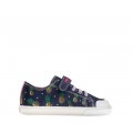 Corte realizado en material textil con divertido estampado de piñas, forro intech muy transpirable con plantilla extraíble de gran amortiguación y antibacteriana, cierre mediante doble velcro y suela de goma muy flexible y adherente.