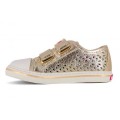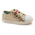 Zapatilla de lona Pablosky en color plata para niña. Un modelo original en acabado plata glitter y decorado en el lateral con el logo de la...