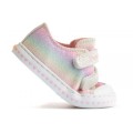 Zapatilla de lona Pablosky 972100 en color blanco glitter. Corte fabricado en lona con estampado multicolor y acabado brillante, tiene refuerzo de goma en la puntera, forro interior textil con plantilla de piel extraíble, cierre mediante doble velcro muy fácil de quitar y poner, piso de goma flexible, antideslizante y resistente al desgarro.
