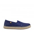 Corte realizado en lona color marino con detalle de yute combinado en la suela, forro interior textil con plantilla acolchada, dispone de elásticos laterales en el copete para facilitar el calce y suela de goma muy adherente. Hecho en España.