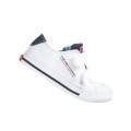 Corte realizado en lona con refuerzo en la puntera, con forro interior textil y plantilla de piel extraíble, cierre mediante doble velcro ajustable y suela de goma muy adherente con gran flexibilidad.