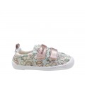 Divertida zapatilla estampada Nens en color nude para niña. Un modelo muy cómodo 100% respetuoso que podrán llevar durante todo el verano y estar siempre muy cómodas.