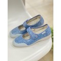 Preciosa zapatilla tipo mercedes de la marca Garrido Muro en color azul o beige. Ideal para los pies más delicados ya que está fabricada en materiales muy suaves y blanditos.