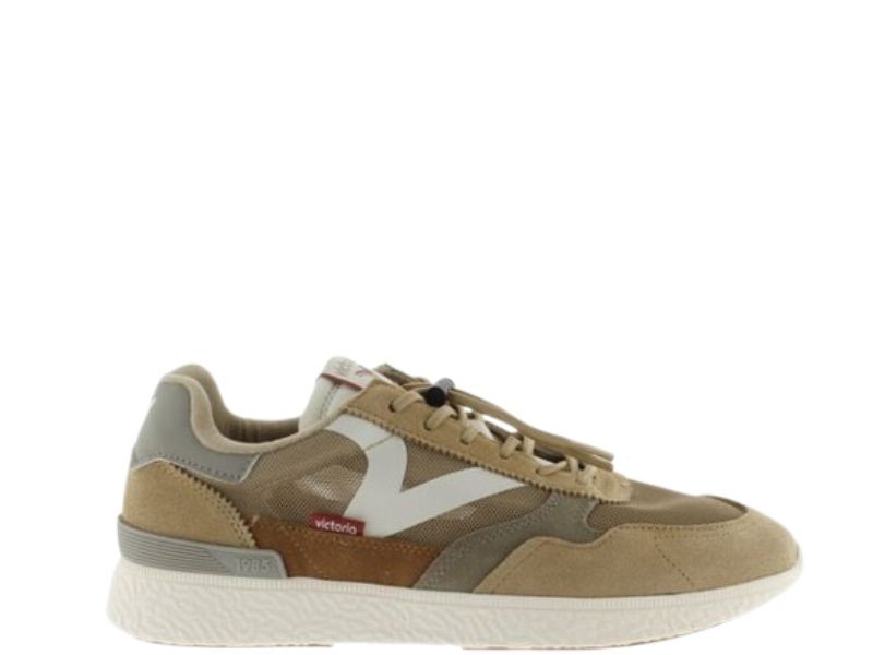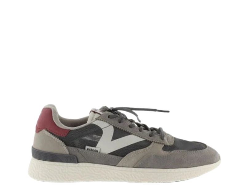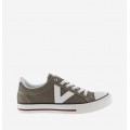 Zapatilla Tribu lona contraste Victoria 1065164 en color blanco, marino, gris o taupe unisex. Corte realizado en lona de algodón con la V de Victoria haciendo contraste en el lateral, forro interior en material textil con plantilla acolchada para mayor confort, cierre mediante cordones al tono y suela de goma con gran adherencia y flexibilidad.