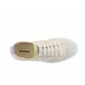 Corte realizado en rejilla de algodón ecológico que combina con piezas en textil y efecto piel. V en el lateral con detalles lila en el tirador y la lengüeta, puntera de goma reforzada, cierre mediante cordones, suela compuesta por materiales reciclados y está fabricada con aceites vegetales en lugar de minerales muy ligera y flexible.