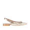 Descubre la elegancia atemporal con las bailarinas destalonadas para mujer de la marca Popa. Su diseño en color oro y puntera afilada te ofrecen un toque de sofisticación que no puede faltar en tu armario.