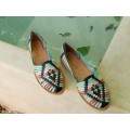 Huaraches Mexas modelo Catrina en tonos azules para mujer. Un modelo único con piel trenzada que consigue un efecto diferente y estiloso.