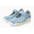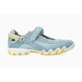 Zapato mercedes Allrounder modelo Niro en color celeste. Corte realizado en material textil con detalle de estampado en motivos florales , forro interior textil con plantilla extraíble para una mejor limpieza e higiene, cierre mediante velcro para un correcto ajuste y una buena sujección, suela de caucho amortiguadora con perfil especial GRIP para una sujeción segura.