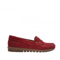 Comodísimo mocasín en piel serraje Aude de la marca Agot en color rojo. Un básico que no puede faltar en tu armario ideal para llevar en la épica de tránsito a las sandalias y en la última temporada del verano así que podrás sacarle el máximo partido.