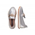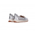 Combina moda y comodidad con el mocasín Kansas de la marca Hispanitas color plata con punta redondeada y detalle metalizado en el empeine. Fabricado en piel y tejidos de rejilla con poliéster reciclado, es transpirable y sostenible.