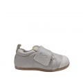 Zapatito de piel respetuoso con cierre de velcro en color gris para niño. Pertenecen a la linea Flexi Nens 100% respetuosos, ideales para los primeros pasos ya que les ofrecen un buen ajuste y una gran flexibilidad.