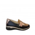 MOCASÍN DE PIEL CON FLECO SUAVE BY LEYLAND EN COLOR NEGRO-MARRÓN 3589