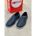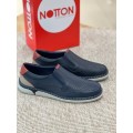 Zapato de piel con copete Notton 0618 en color azul para hombre. Corte realizado en piel con detalle de elásticos en los laterales para facilitar el calce y pala picada, forro interior textil con plantilla extraíble Unión System de gran confort con sistema antibacterias, absorción y desabsorción para una mejor limpieza e higiene, suela de goma super light muy adherente y flexible.
