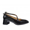Estiloso zapato de Ragazza Calzados Roldan para mujer en color negro. Un modelo fabricado en charol con detalle de tiras cruzadas en el empeine y un tacón bajo de 4cm también forrado en charol. Aporta un toque sofisticado a tus looks y sienta ideal con falda y vestido.