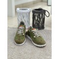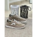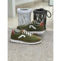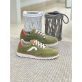 Zapato deportivo de la marca On Foot 705 en color kaki, taupe o azul para hombre. Corte realizado en piel serraje y material textil, forro interior de material textil que asegura una correcta transpiración con plantilla memory foam realizada en materiales reciclados y extraíble, cierre mediante cordones elásticos y suela cosida de corcho reciclado flexible y ultraligera.