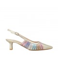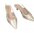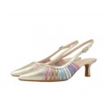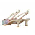 ZAPATO DESTALONADO CON TACÓN CHENTINA LODI EN COLOR ORO CON TIRAS MULTICOLOR