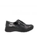 Corte realizado en piel con piezas en diferentes acabados, forro interior de piel y material textil con plantilla antómica extraíble y lavable a 30 grados, cierre mediante cordones y cremallera lateral, equipado con sistema Air Fuction para mejor transpiración y suela de material sintético sintético muy flexible y adherente.