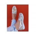 Corte realizado en piel natural con estampado multicolor, plantilla acolchada de piel que transpira a la perfección, elástico en el copete que facilita mucho el calce y ofrece un buen ajuste, suela de goma con gran adherencia.